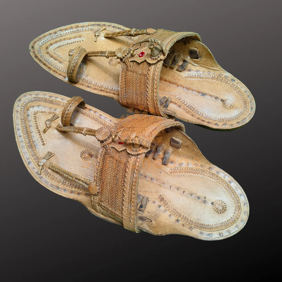 Material: Our Kolhapuri Chappals are made from high-quality, natural leather sourced from trusted suppliers. The use of genuine leather ensures superior comfort, durability, and breathability, allowing your feet to stay cool and comfortable throughout the day.