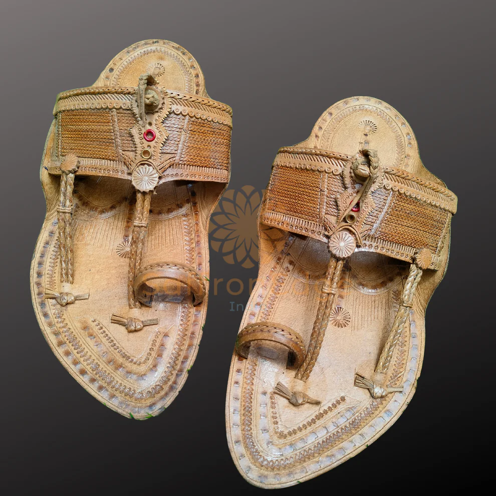 Introducing our stunning collection of Kolhapuri Chappals, meticulously handcrafted using the finest natural leather. These authentic Indian footwear pieces embody timeless elegance and traditional craftsmanship, making them a must-have addition to your wardrobe.