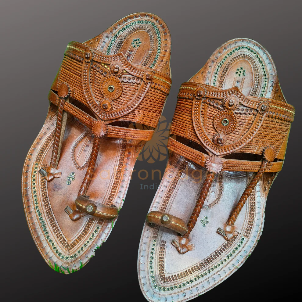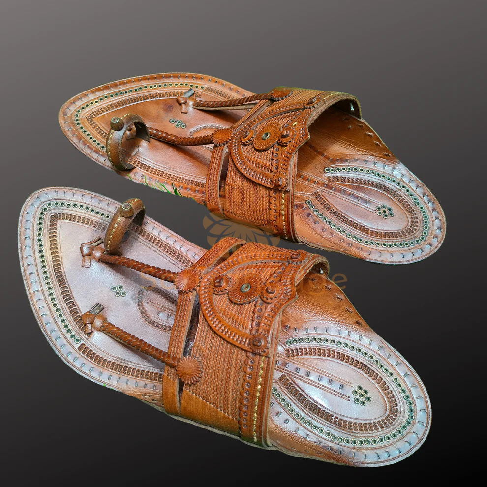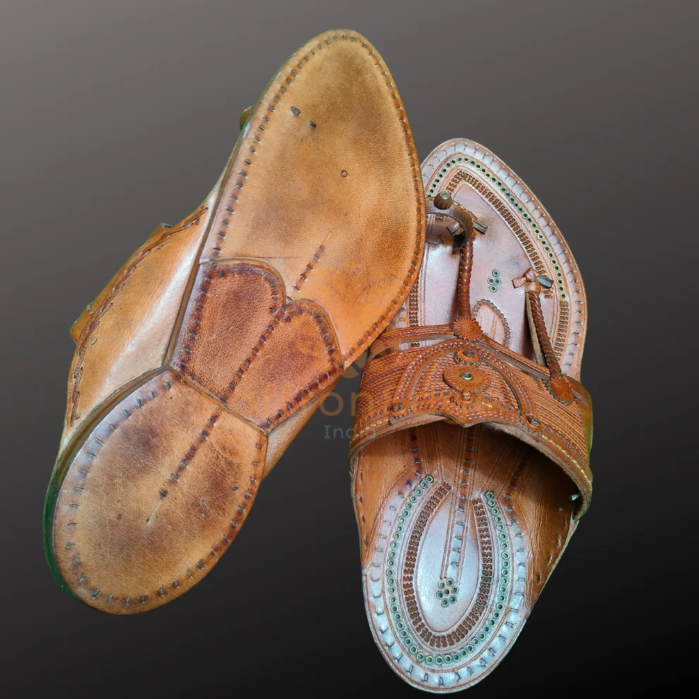 Material: Our Kolhapuri Chappals are made from high-quality, natural leather sourced from trusted suppliers. The use of genuine leather ensures superior comfort, durability, and breathability, allowing your feet to stay cool and comfortable throughout the day.