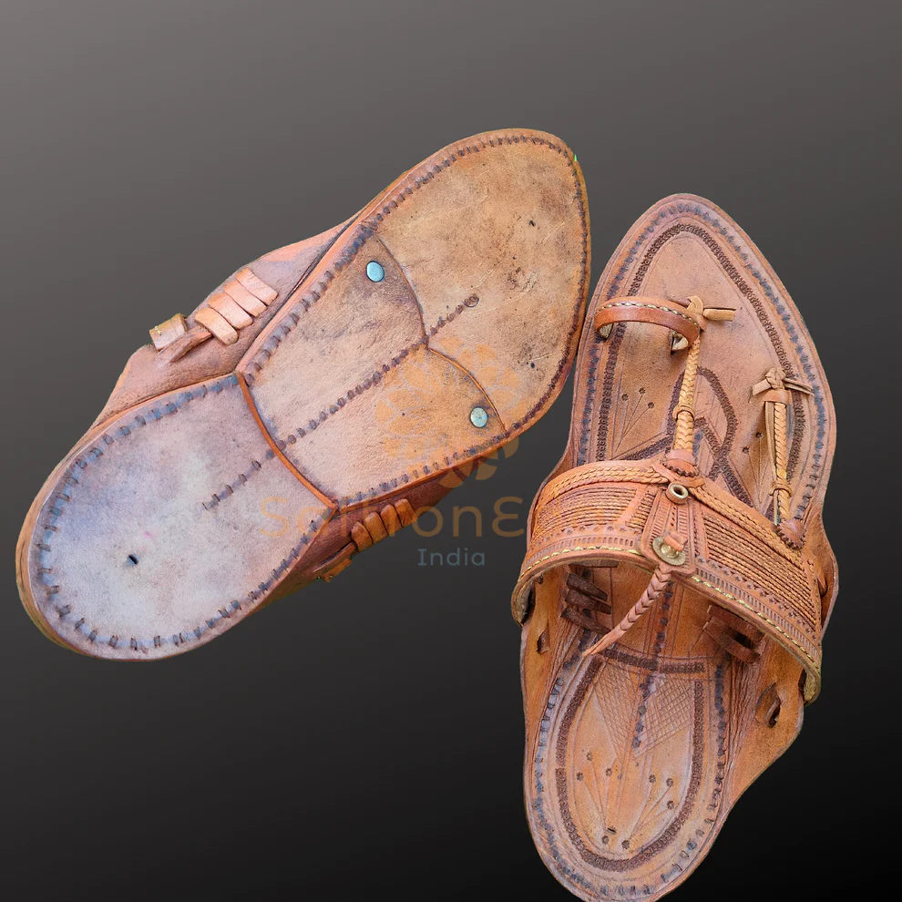 Material: Our Kolhapuri Chappals are made from high-quality, natural leather sourced from trusted suppliers. The use of genuine leather ensures superior comfort, durability, and breathability, allowing your feet to stay cool and comfortable throughout the day.