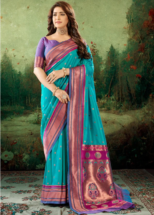 Persian Blue Woven Paithani Soft Silk Saree